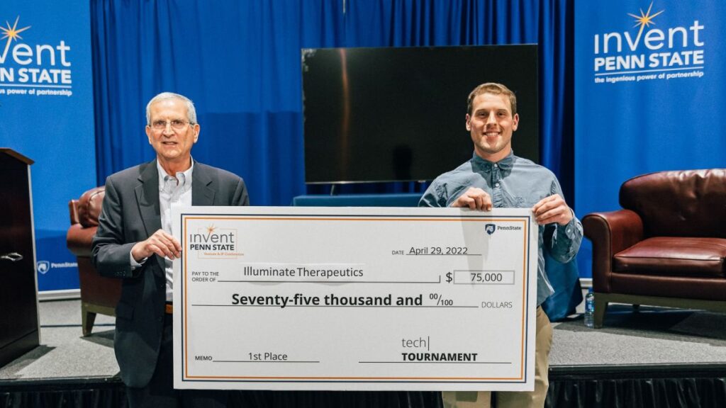 By Cara Aungst Illuminate Therapeutics won $75,000 in the Penn State’s Tech Tournament for its disruptive technology to battle head and neck tumors. (Pictured, Nick Alden, graduate student in biomedical engineering, accepting the award from James Pietropaolo, associate director of the Office of Entrepreneurship & Commercialization.) Credit: Invent Penn State / Rick Brandt On April 29, […]