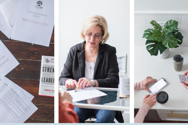 Thrive’s primary service is managing all HR for businesses, including onboarding, offboarding and compliance. Secondary services include consulting and working on singular projects, like compiling an employee handbook.
