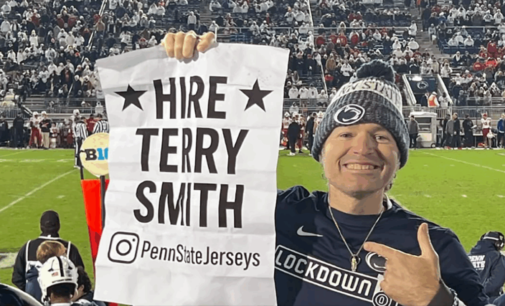 You probably saw it: a simple blue and white sign that popped up on national TV at the exact moment the whole Penn State world was watching. No marketing team. No NIL collective behind it. Just a regular Penn State fan who walked into Staples, printed a stack of signs, and started handing them out for free.