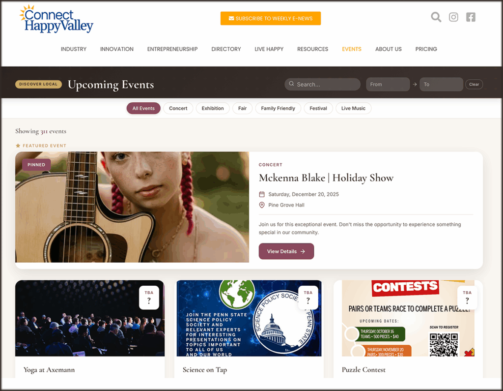 To see the results in action, check out Connect Happy Valley’s improved community calendar and start planning what you will do next.
