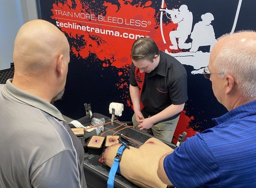 ERTCA partner TECHLINE Technologies demonstrates methods for applying a loss-of-limb tourniquet at ERTCA event in Bradford County, PA. Photo: Provided.