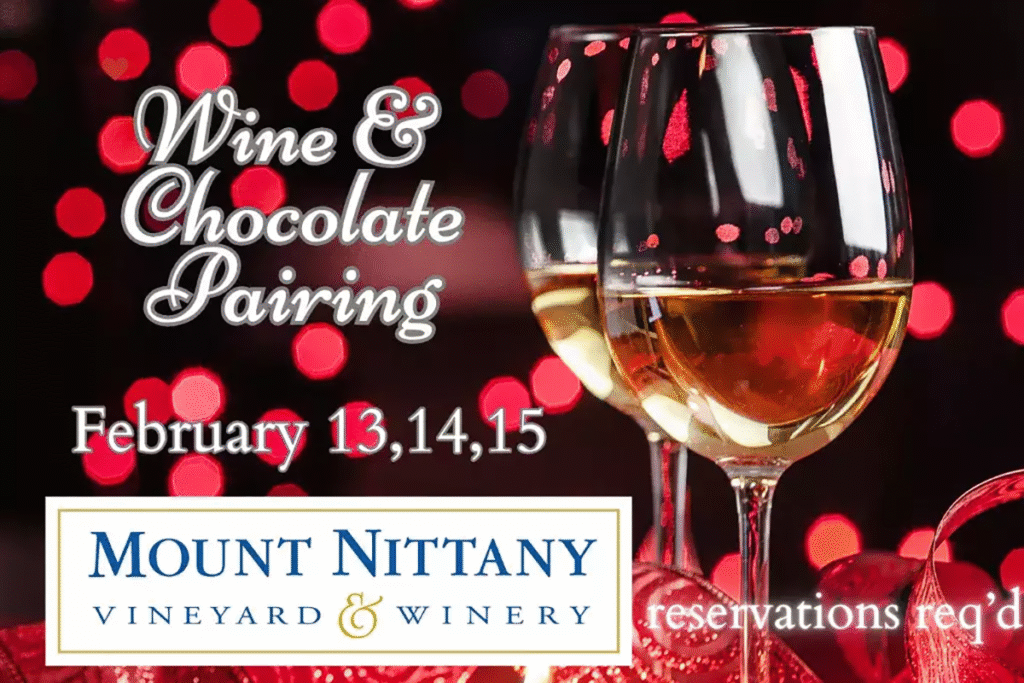 - Wine and Chocolate Pairings at Mount Nittany Vineyard on February 6, 13, and 14